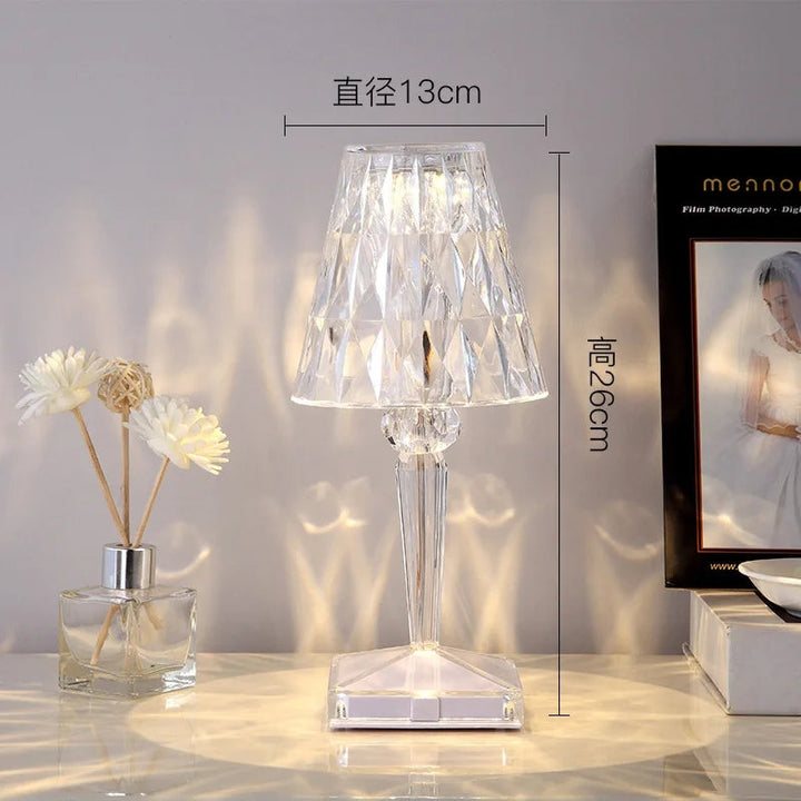 Illuminate your space with the ACRYLIC DIAMOND TABLE LAMP. Made of high-quality acrylic, it adds a touch of elegance to any room. With its sleek design and durable material, this lamp is perfect for both modern and traditional styles. Perfect for creating ambient lighting and enhancing the decor of your home.