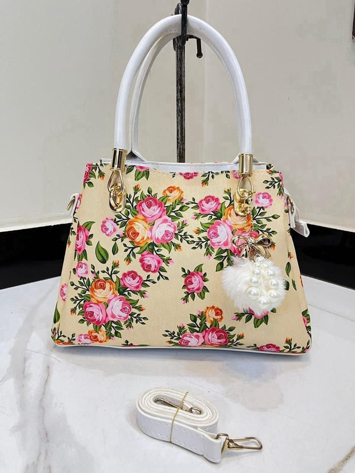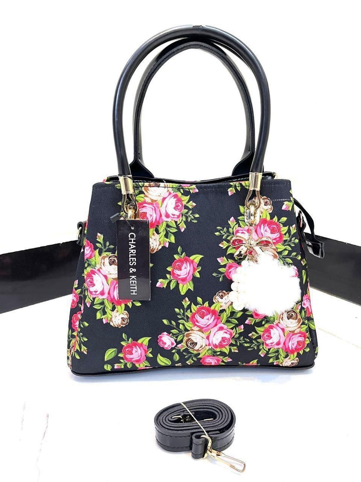 This elegant floral pattern handbag is a perfect blend of sophistication and style. Crafted from high-quality material, it features a vibrant, intricate floral design that adds a touch of nature's beauty to your ensemble. The spacious interior is complemented by a sleek and sturdy handle, designed for both comfort and ease of carrying. The bag also boasts a charming accent, such as a decorative charm or keychain, attached to the handle, offering a personalized and trendy flair. Whether for everyday use or a special occasion, this handbag serves as both a functional and fashionable accessory.